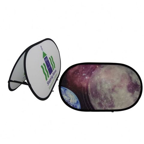 ポリエステル楕円形スタンド引き出し看板,屋外ポップアップフレームサイドラインバナーデジタル印刷サインスタンド