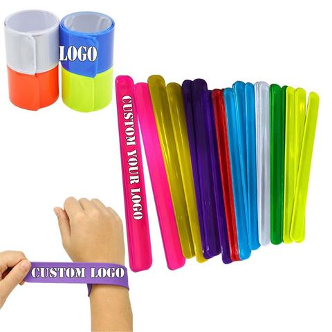 Oemキッズギフトカスタムロゴプリントラップクラップリストバンド視認性の高い反射性Pvcスラップブレスレットスポーツリストバンド